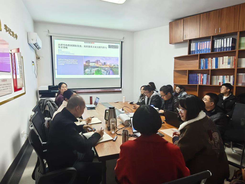 为助力科研人员提高高水平论文写作能力,搭建学术交流与经验分享的平台,11月25日,中心特别邀请澳大利亚麦考瑞大学管理学系副教授路英博士,举办“从研究构想到国际发表:高质量英文论文的写作与发表策略”的学术讲座。此次讲座由中心主任苏昕教授主持,中心全体师生以线上线下相结合的方式参与了该讲座。