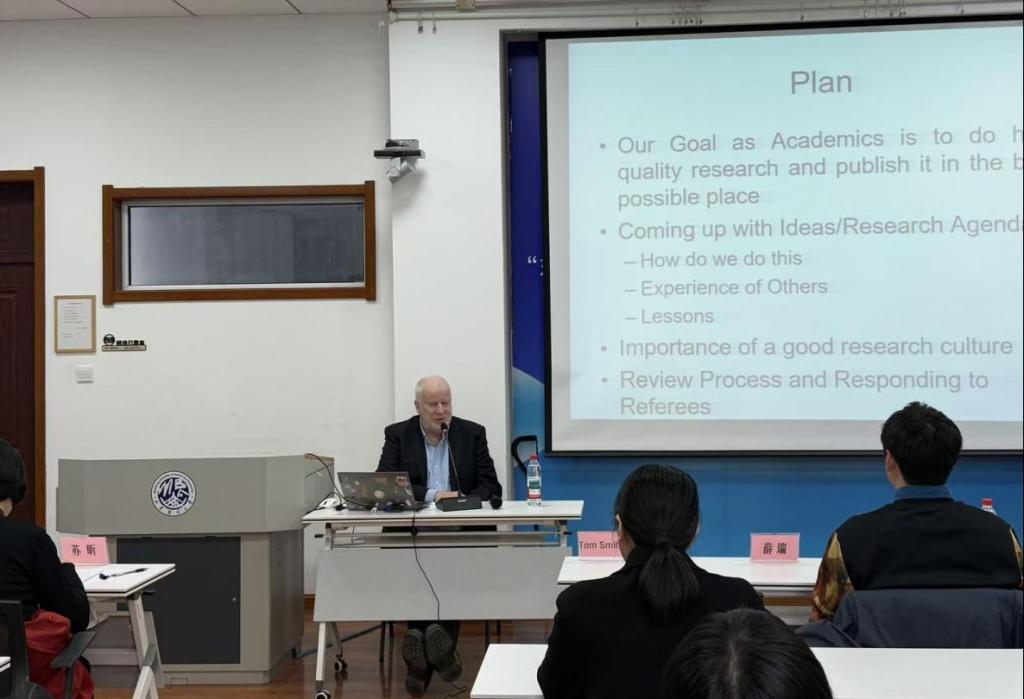 2025年11月29日下午,中心特邀澳大利亚社会科学院院士、麦考瑞大学教授Tom Smith和澳大利亚乐卓博大学教授薛瑞,进行了一场题目为“Coming up with Research Ideas and Getting Published”的主题报告。中心全体教师和研究生参加讲座。